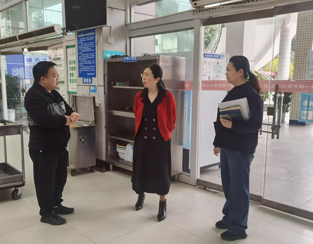 督导过程中,程碧英副校长一行深入学校各食堂、博大资产管理有限公司小吃街、小卖部及校园超市等食品经营区域,实地查看食材采购查验、索证索票等环节,详细询问生产操作规范、安全管理制度落实细节。
